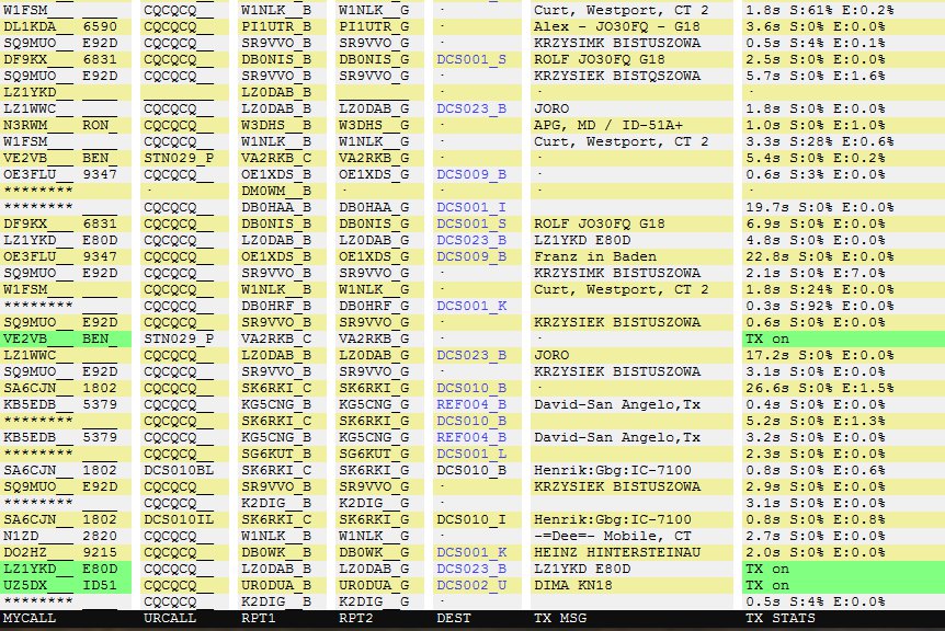 Dans le Live, on y retrouve les indicatifs des OMs, les valeurs de Your, le relais utilisé, le réflecteur ou le relais destinataire, le message texte et les stats sur les trames envoyées.